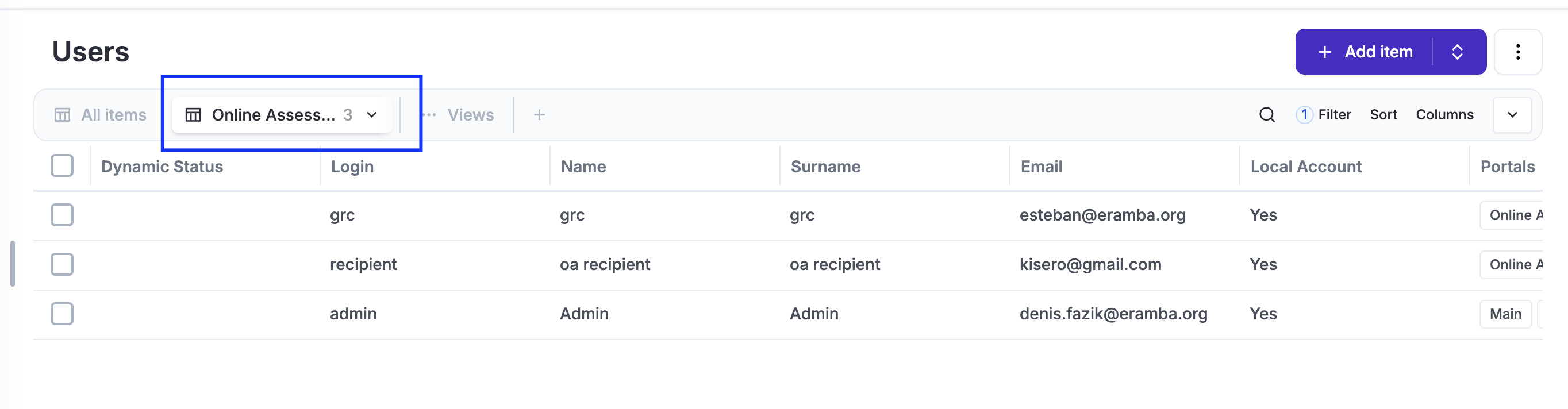 - Name: Online Assessments Accounts