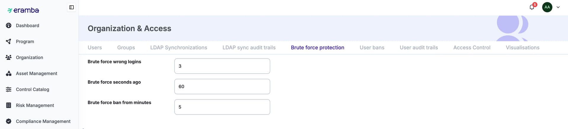 - Brute Force settings