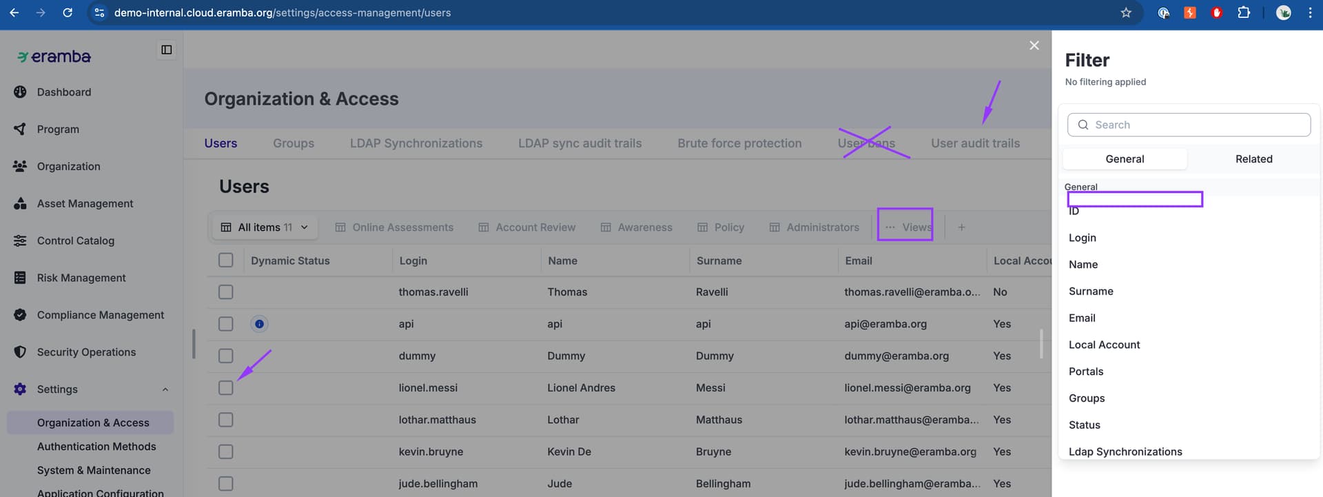 The aim here is to improve the Settings / Access Management / User Management menu by: