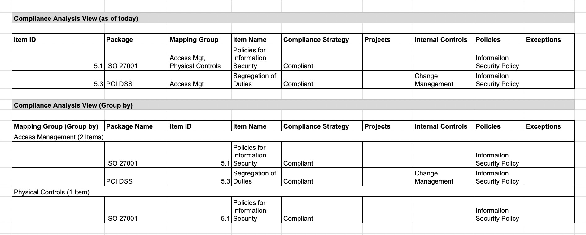 - A compliance package item in the “Compliance Analysis” module that involves “Mapping Groups”
