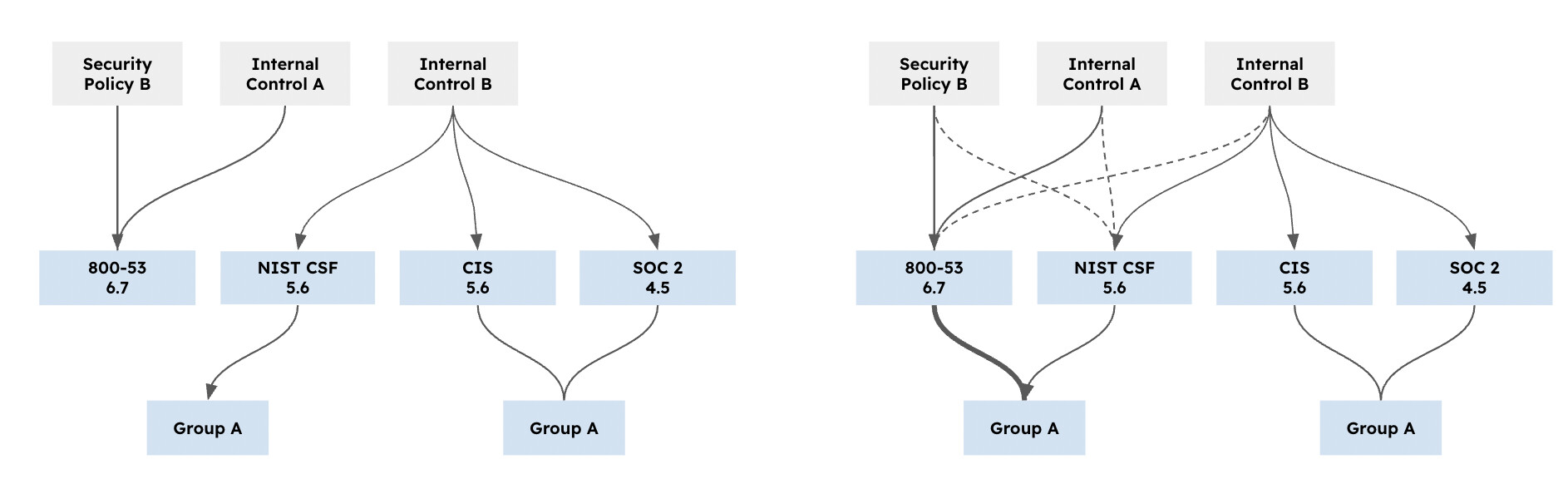 Note: CIS 5.6 and SOC2 4.5 are not involved as they are not associated to the affected “Mapping Group”