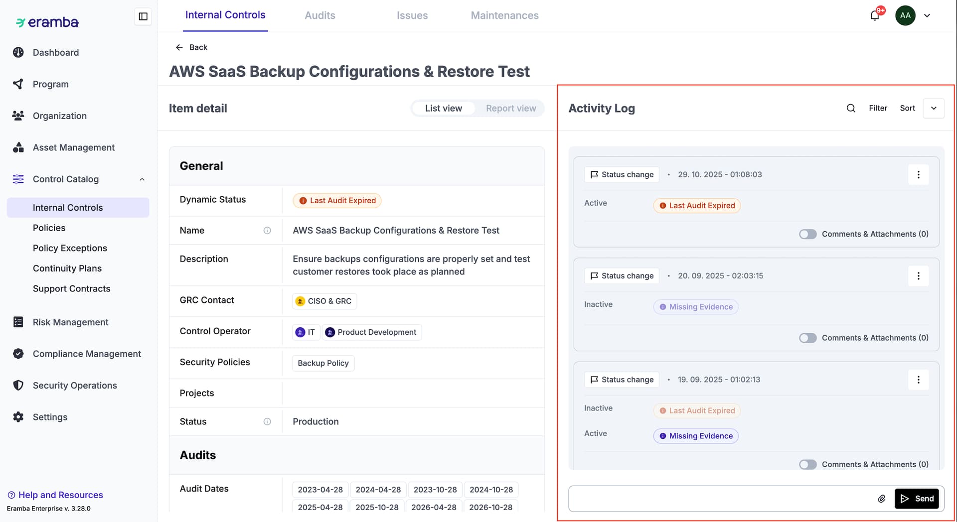 On the right side, you will find the activity log for the item. The activity log is presented in a clear, user-friendly, and chronological format, making it easy to understand how the item has evolved over time.