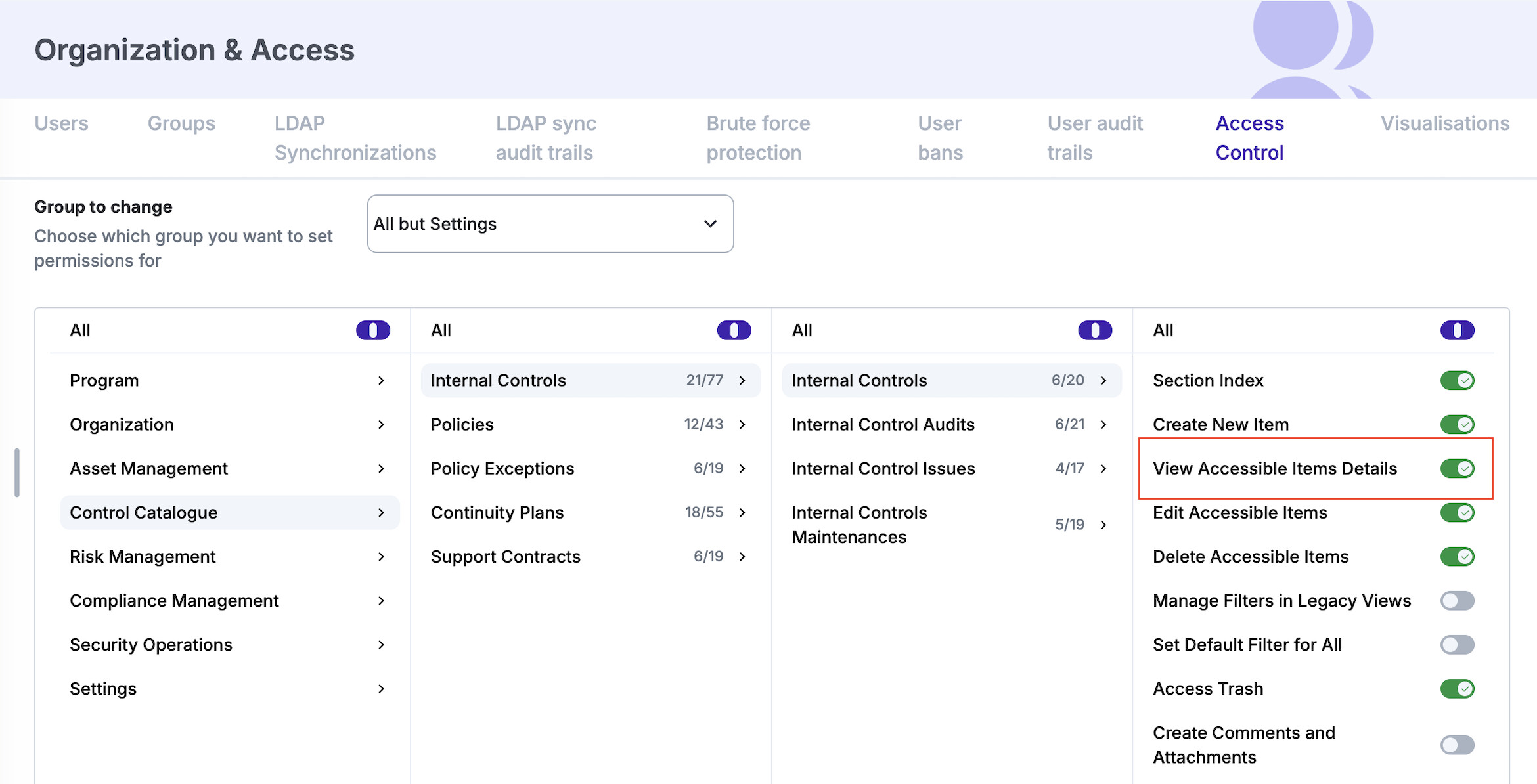 This modal also has its own access control rules. You can explicitly allow or restrict user access to this view through ACL settings, giving you full control over who is able to see the detailed view and its contents.