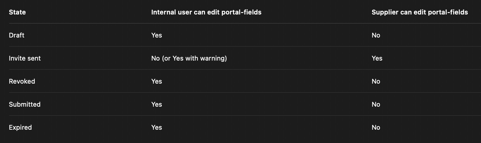 - Dynamic status triggers for this item (Supplier Portal Enabled)