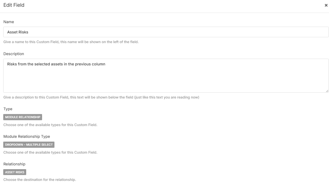 Step 3: The system auto-populates a new field called “Inherited Asset Risks.”