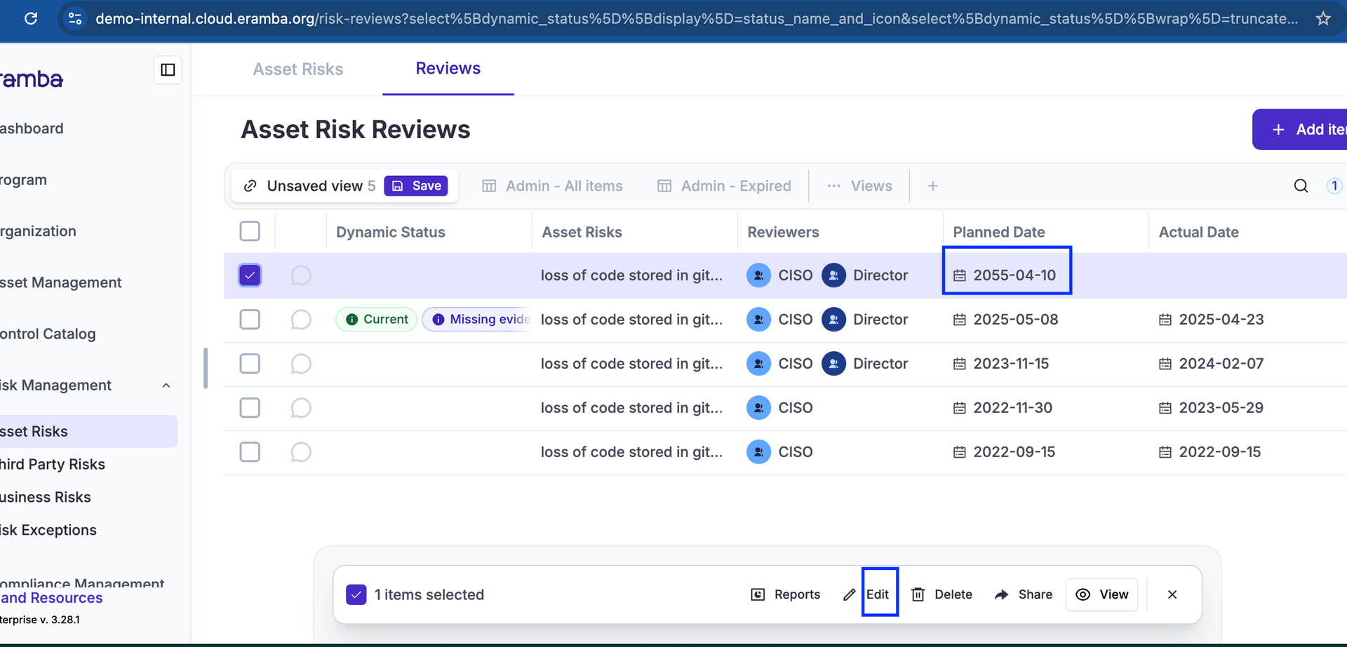 i have some risks whose reviews expired - now I cannot edit the date at all - how does one update the review and date so that it is not sitting as expired?